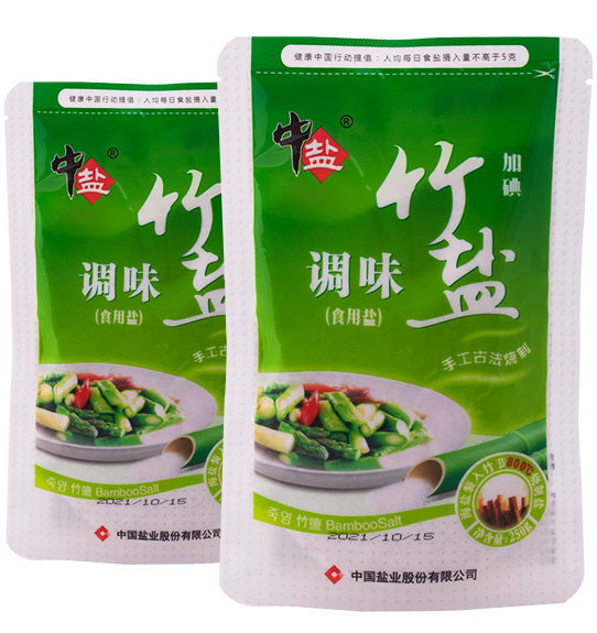 古法制作、传统工艺,三和园竹盐选用三年生的壮年竹材,装入优质日晒海盐,用松木高温烧制而成,竹盐呈灰白色粉末或是颗粒状,黑色细微颗粒为高温煅烧碳化物,可正常食用。